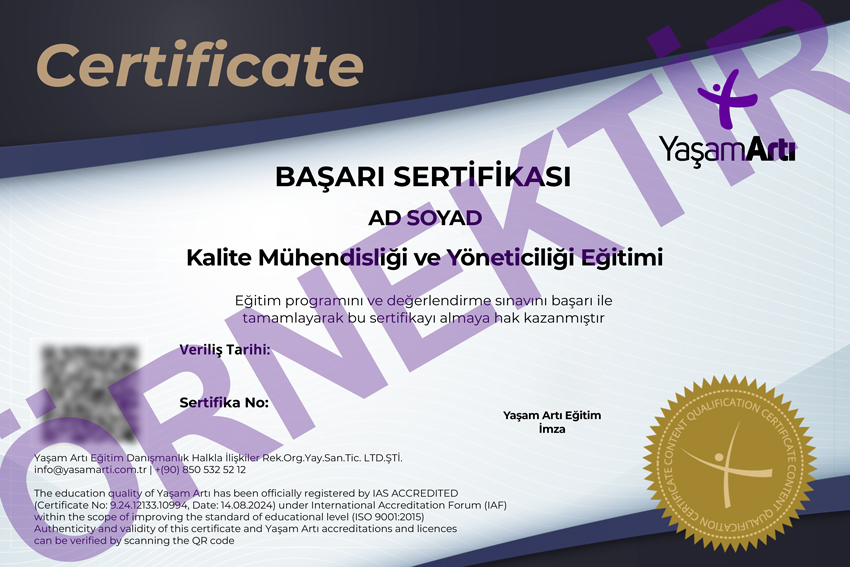Kalite Mühendisliği ve Yöneticiliği eğitimi ile günümüzde kurum ve kuruluşların aradığı nitelikte çalışanlar olmak için tüm yetkinlikleri kazanabilir ve e-Devlet onaylı Kalite Mühendisliği sertifikası ve Uluslararası ISO Yönetim Sistemleri sertifikalarınız ile aynı zamanda İç Denetçi ünvanına sahip olabilirsiniz. Kalite Mühendisliği Uzaktan Eğitim Programı ile sürekli iyileştirme, stratejik planlama, kalite yönetimi, denetleme ve dökümantasyon uygulama süreçlerine hakim olarak firmaların bu alanda aradığı uygulama ve denetleme alanında yetkin kişiler olabilirsiniz.